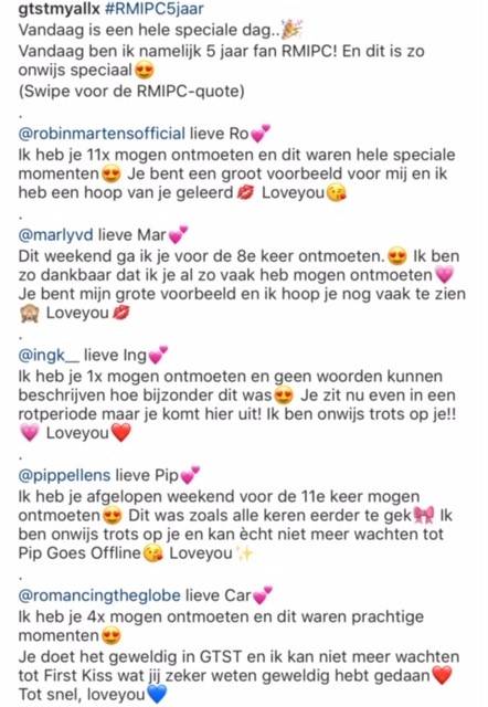 Ik ben zo enorm trots dat ik precies 5 jaar fan ben. Dit werd uitgebreid gevierd met RMIPC-tompoezen en een insta post.